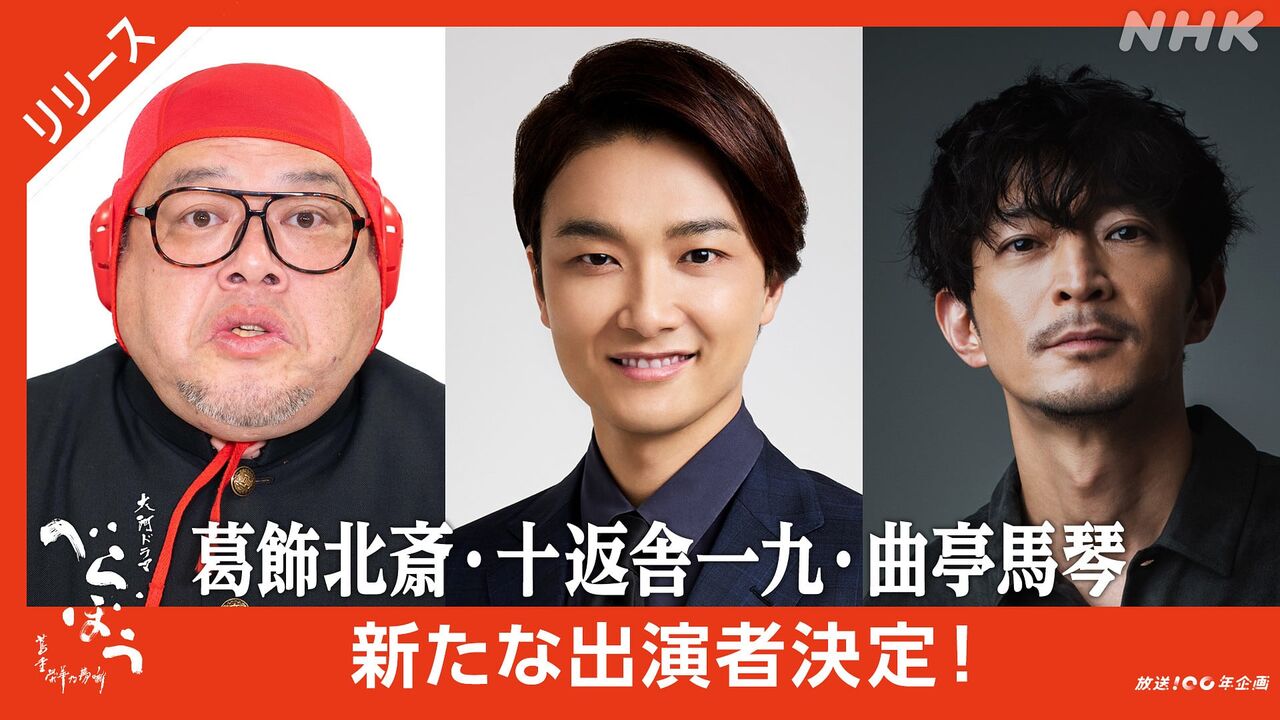 【キャスト】 今田美桜、北村匠海、江口のりこ、加瀬亮、河合優実、原菜乃華、高橋文哉、志田彩良、細田佳央太、中沢元紀、瞳水ひまり、瀧内公美、ソニン、戸田菜穂、二宮和也、山寺宏一、松嶋菜々子、竹野内豊、吉田鋼太郎、浅田美代子、阿部サダヲ、中島歩、津田健次郎、妻夫木聡、戸田恵子、眞栄田郷敦、古川琴音、【主題歌】 「賜物」RADWIMPS、【作】 中園ミホ、【音楽】 井筒昭雄、【ナレーター】 林田理沙、【 時代設定】 1920年~ 【制作・著作】 NHK
