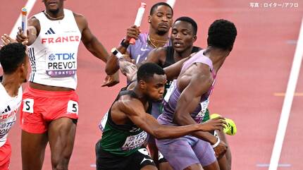 | 豪雨の男子4×400mリレーはボツワナが大逆転金メダル! 0.07秒差でアメリカをかわす 満員の国立競技場は鳥肌立つ大興奮【世界陸上】 雨中の大熱戦に国立が震えた。 9月21日、東京世界陸上は最終日を迎えた。男子4×400メートルリレー決勝が行なわれ、ボツワナ2分57秒76で金メダルを獲得した。ケニ… (出典:THE DIGEST) |